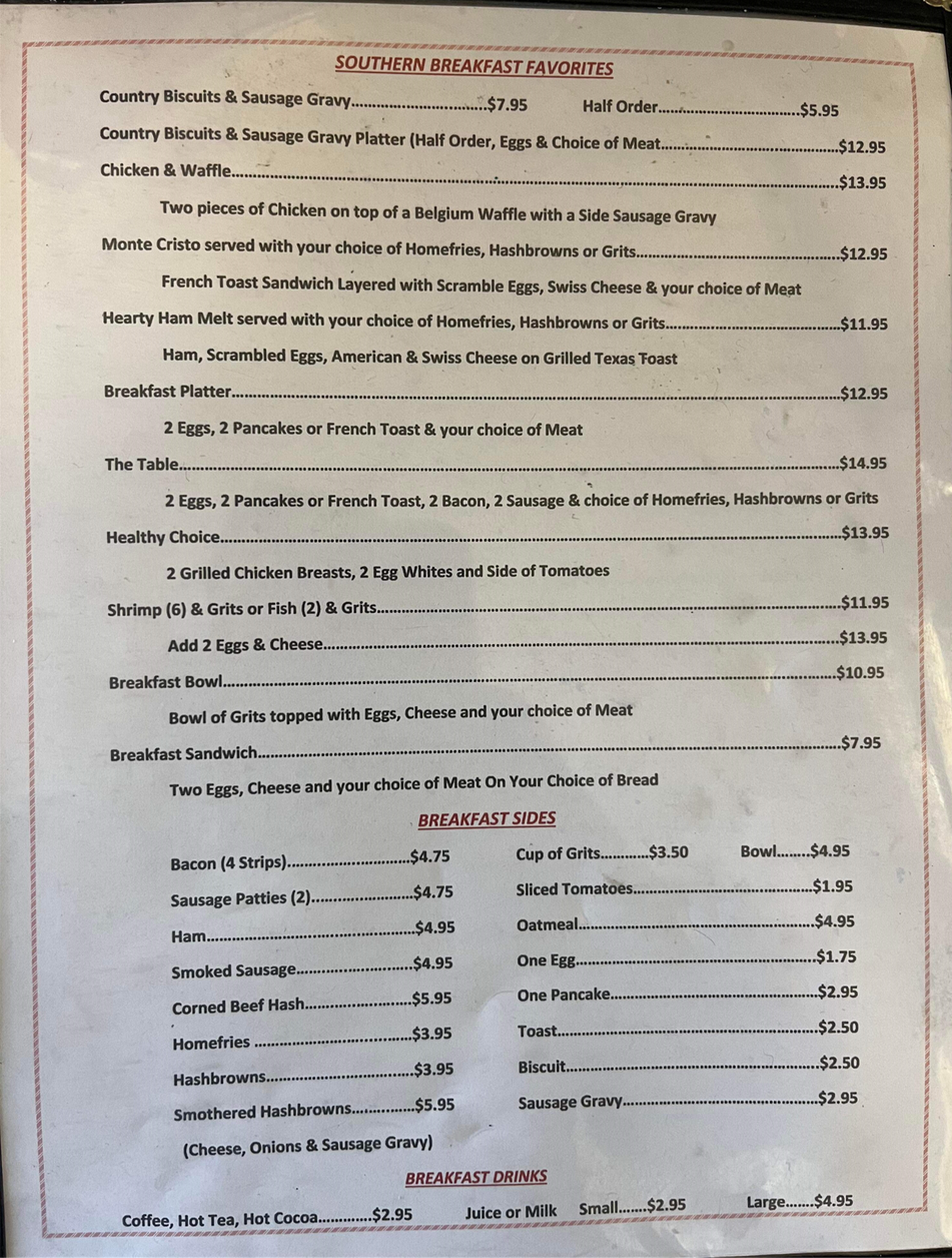 Welcome to Souther Table Restaurant, where you can enjoy delicious Souther home cooked food in a welcoming and friendly atmosphere where quality meets affordability whether it be take out or dining in.